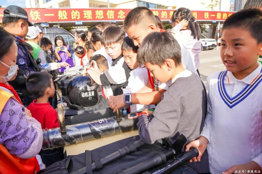 “哇,交管叔叔好酷!”在铁骑队员现场展示摩托车绕桩、队列行进等专业技能环节,精准的操控与整齐的队形赢得了现场阵阵掌声,充分展现了铁骑队伍的专业素养与守护城市道路安全的过硬能力。“我也要体验一下当铁骑队员的感觉!”现场小朋友在民警和家长的看护下,纷纷坐上警用摩托车,过一把“铁骑”瘾。